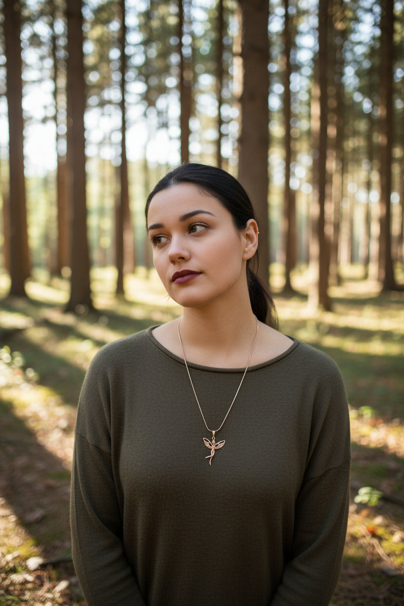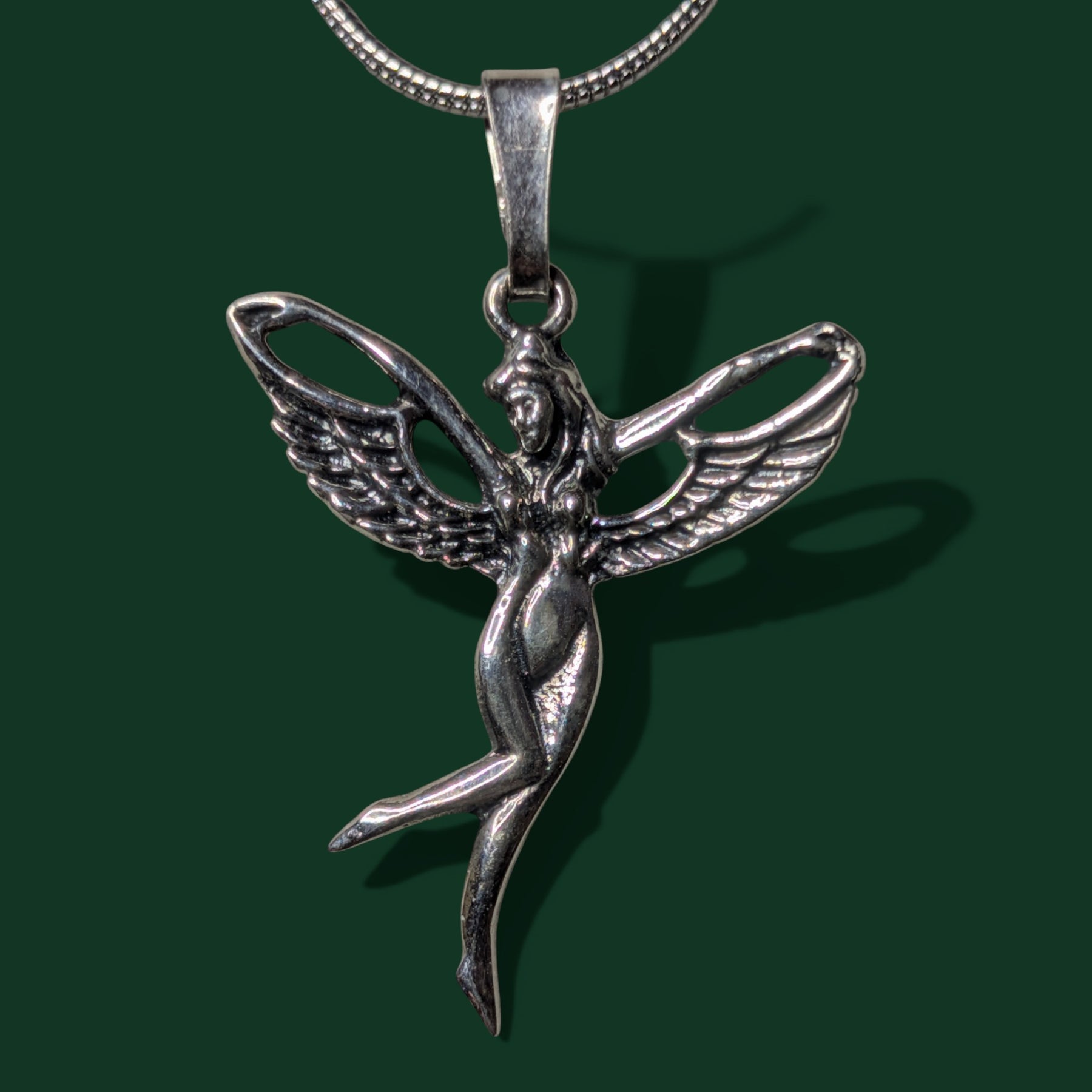 Verleihen Sie Ihrem Look Magie mit unserer Halskette, deren Anhänger ein fein gearbeitetes Feen-Motiv in einer hochwertigen 925er Sterlingsilberfassung ziert.