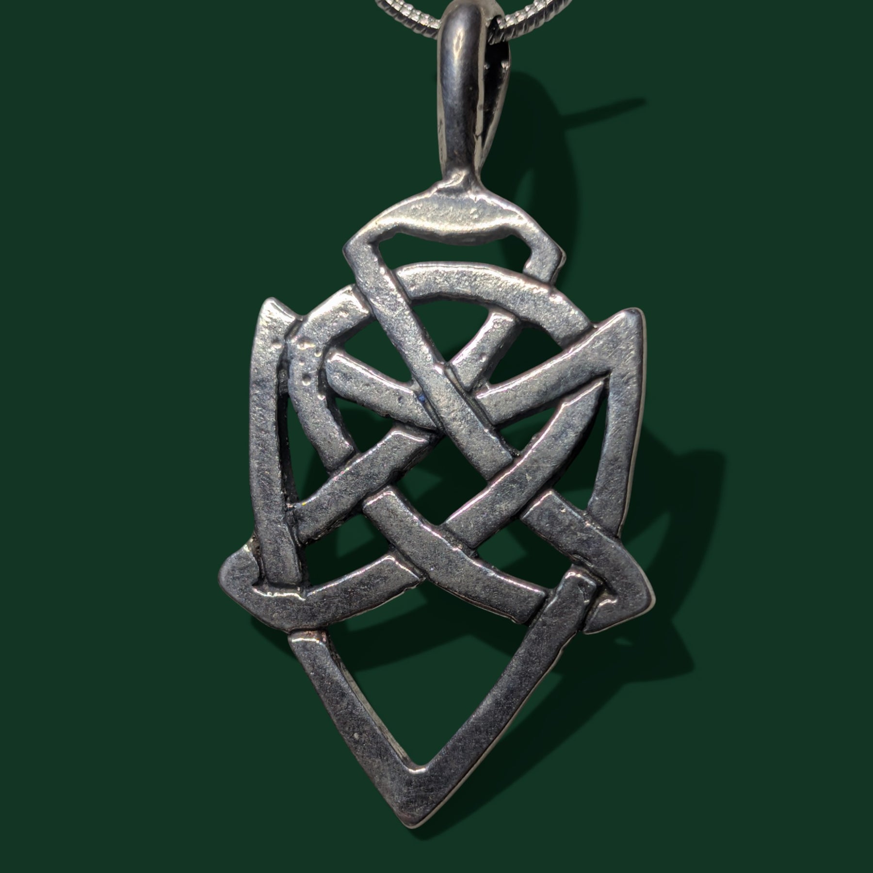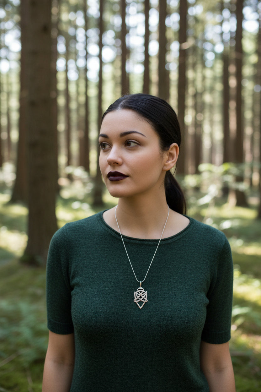 Verleihen Sie Ihrem Look eine zeitlose, mystische Note mit unserer Halskette, deren Anhänger ein fein gearbeitetes keltisches Motiv in einer hochwertigen 925er Sterlingsilberfassung ziert. Die filigranen Linien und das verzahnte Muster strahlen Eleganz und Tradition aus.