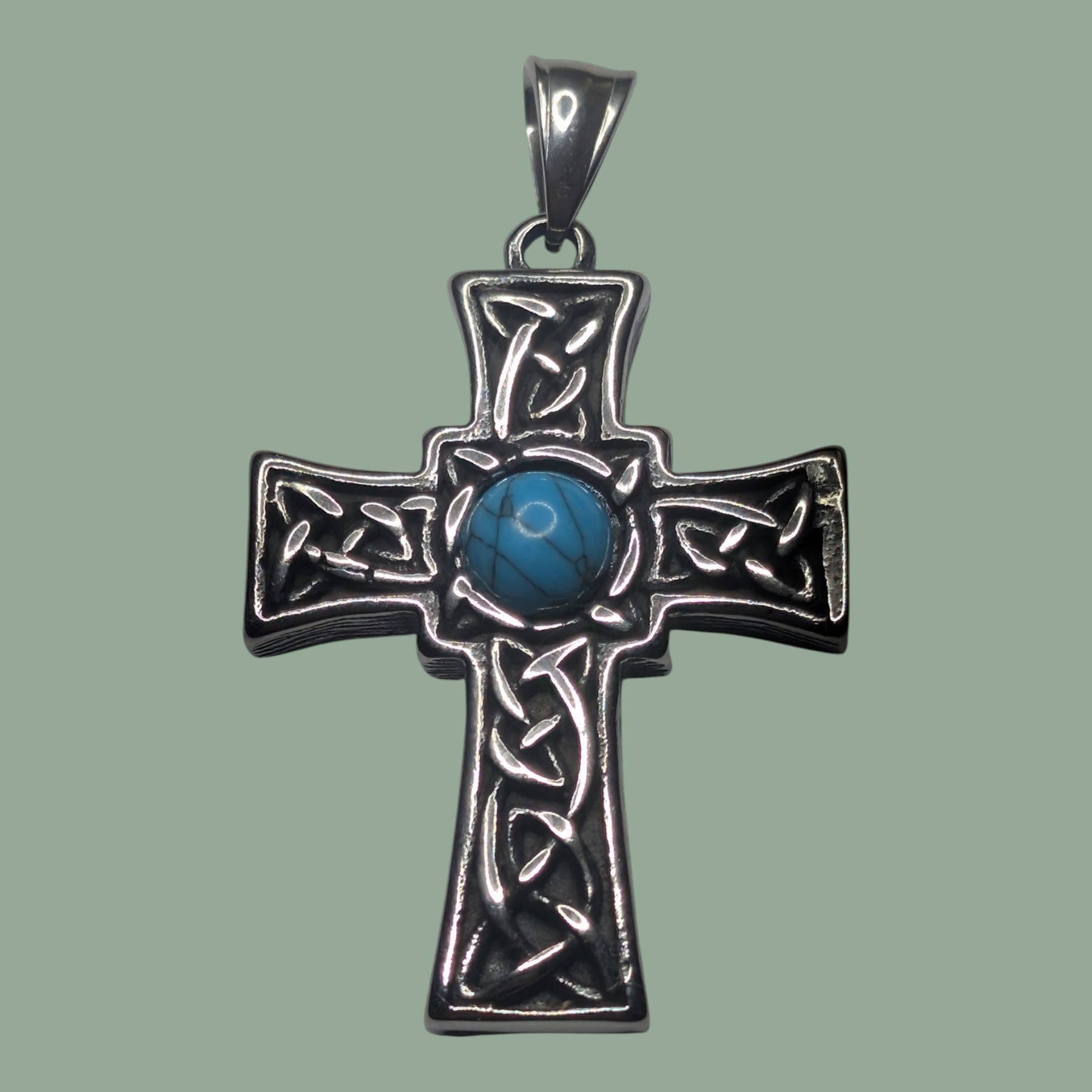 Das Kreuz ist aus hochwertigem Edelstahl gefertigt, was Langlebigkeit und einen modernen Look garantiert. Der blaue Howlit bringt einen Hauch von Farbe und Ruhe in das ansonsten klassische Design. Perfekt für Liebhaber keltischer Symbole oder Menschen, die nach einem bedeutungsvollen, stilvollen Accessoire suchen.