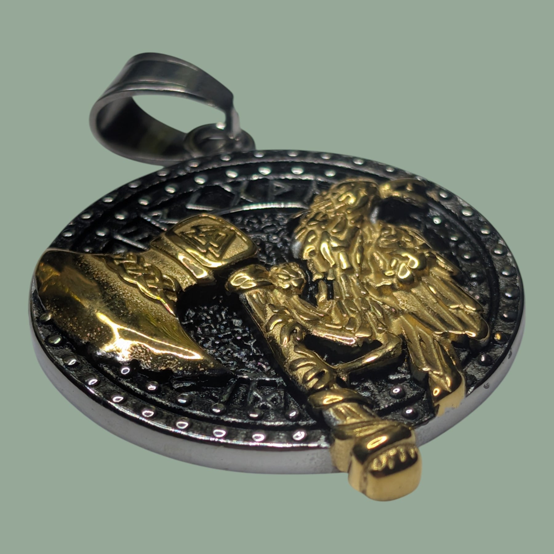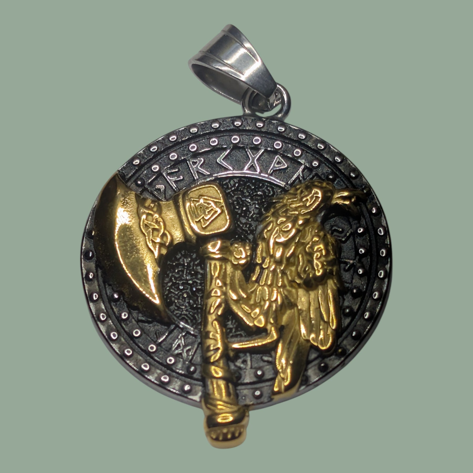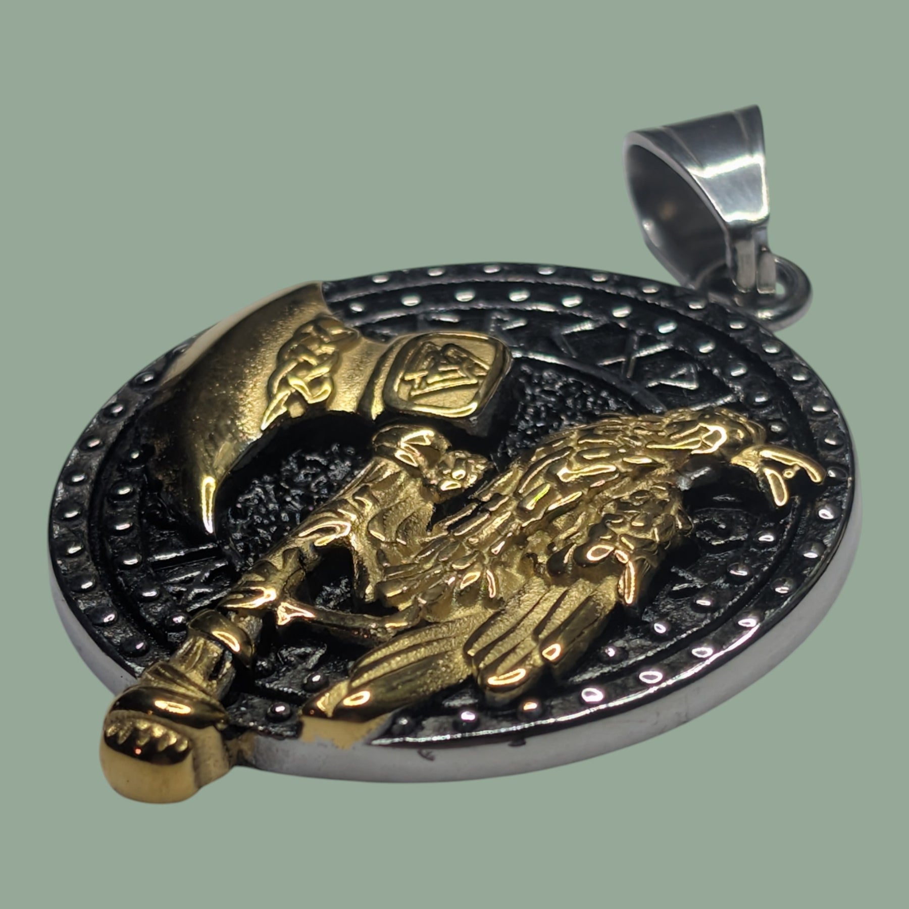 Gefertigt aus hochwertigem Edelstahl, besticht das Schmuckstück durch seine langlebige Qualität und die kunstvolle Verarbeitung. Es ist ideal für Fans nordischer Legenden, Naturliebhaber oder alle, die Stärke und Weisheit symbolisieren möchten.