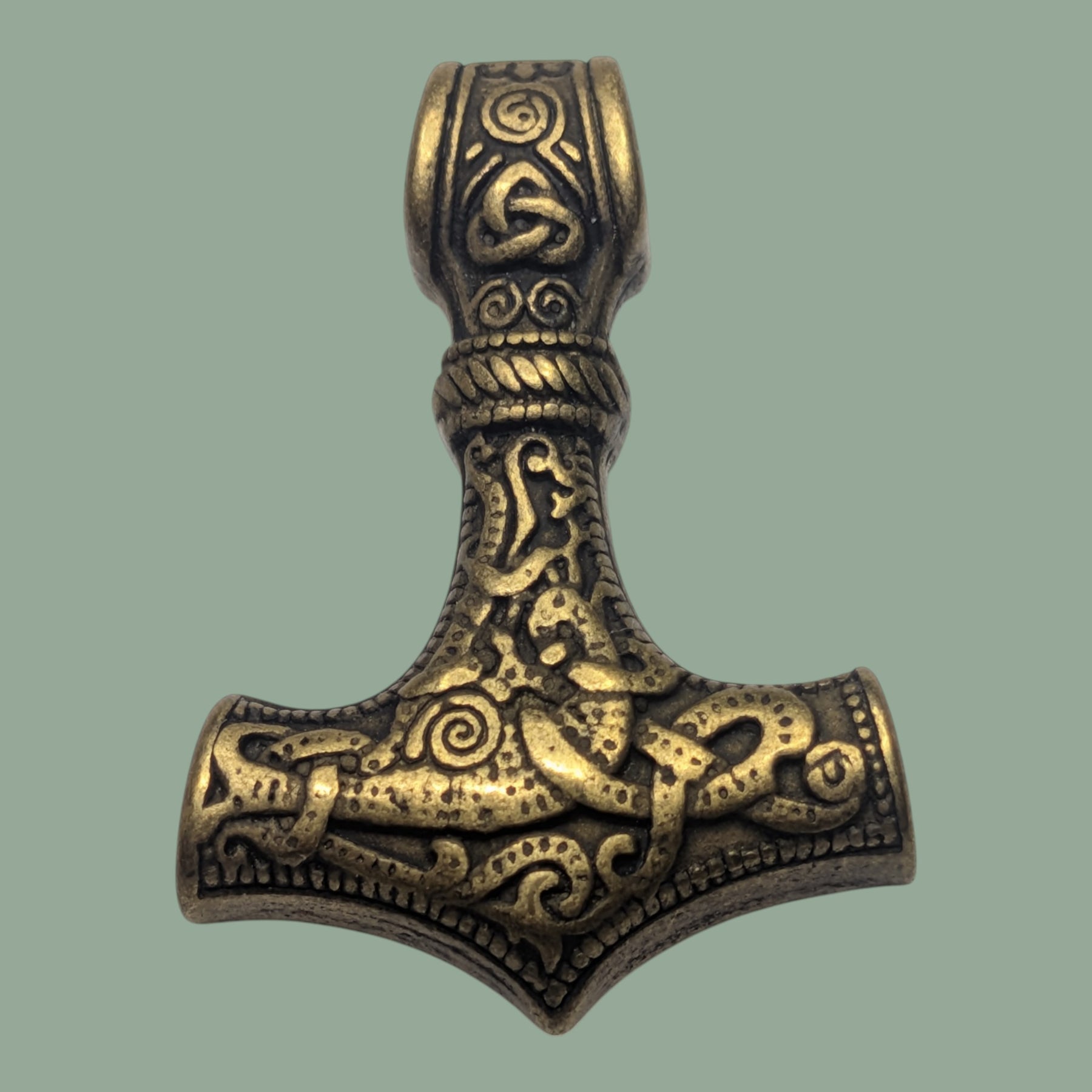 Der Thors Hammer ist ein kraftvolles Symbol in der nordischen Mythologie, das Schutz, Stärke und Mut repräsentiert. Mit einem robusten Design und detaillierten Verzierungen gestaltet, verkörpert dieser Anhänger die mächtige Energie des Donnergottes Thor. Ob als Schmuckstück, Anhänger oder Dekoration – der Thors Hammer verbindet traditionelles nordisches Design mit tiefgehender Bedeutung. Gefertigt aus hochwertigen Materialien wie Bronze, Edelstahl oder Silber, bietet dieses Symbol einen zeitlosen Blickfang voller spiritueller Kraft.
